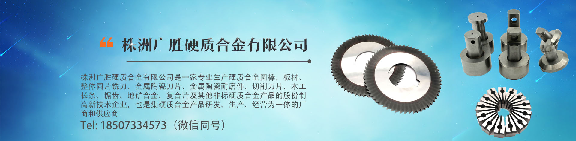 株洲廣勝硬質合金有限公司成立于2005年,坐落于株洲市交通便利、物流發達的董家塅高科技產業園,并在廣東東莞、江蘇昆山和浙江溫嶺設有辦事處,是一家專業生產木工長條、圓棒,板材,圓片、切削刀片、鋸齒、地礦合金、螺旋條及其他非標硬質合金產品的股份制企業,也是集硬質合金產品研發、生產、經營為一體的廠商和供應商.